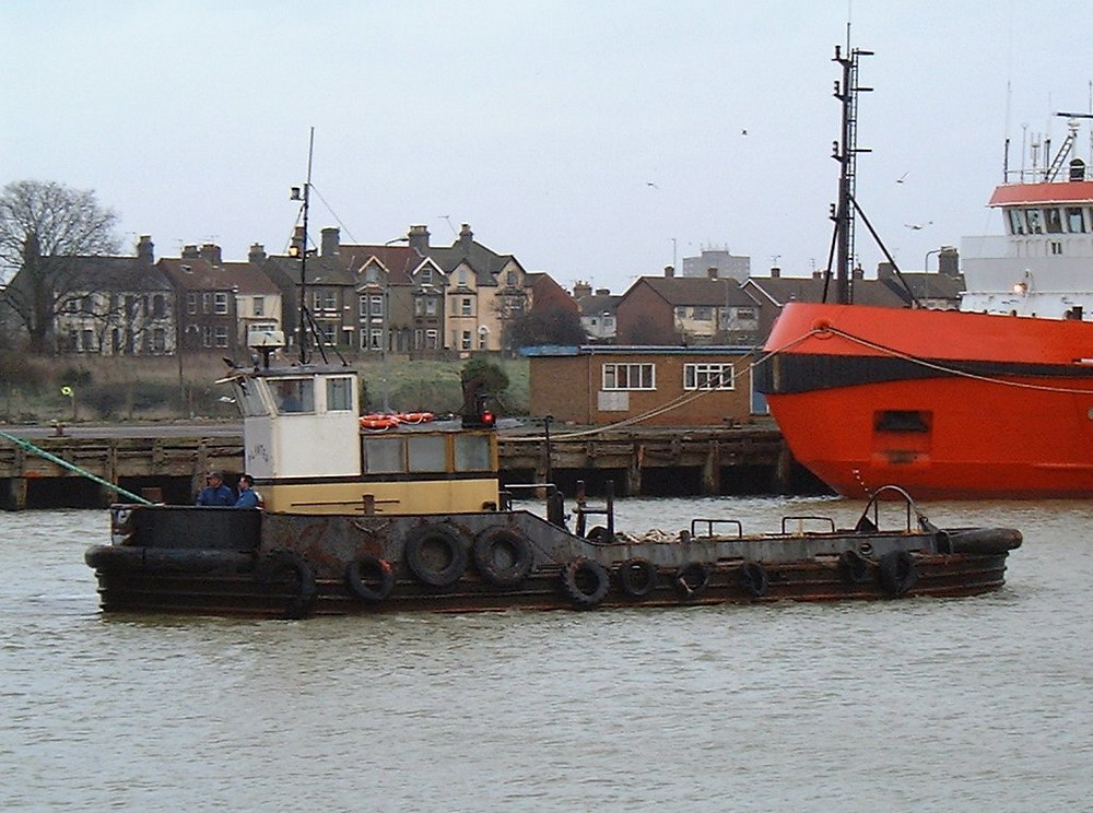 The tug is PLANTER an ex PLA tug built by JW Cook & Co at Wivenhoe in 1968