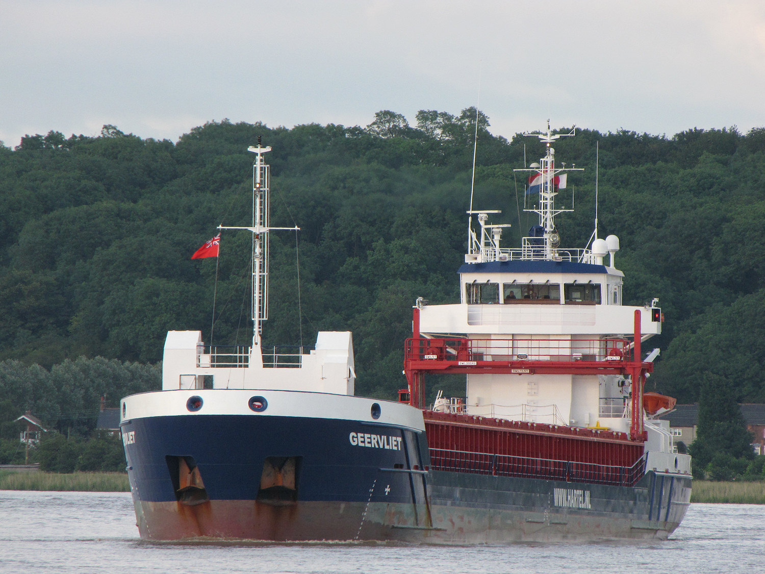 ... and coming up at a very sedate pace although not on full draft, another new sighting GEERVLIET of 2011 and clearly a Damen Bergum production line ship on a hull by Macvanska Mitrovica, Sava. Last in and bound for Flixborough.