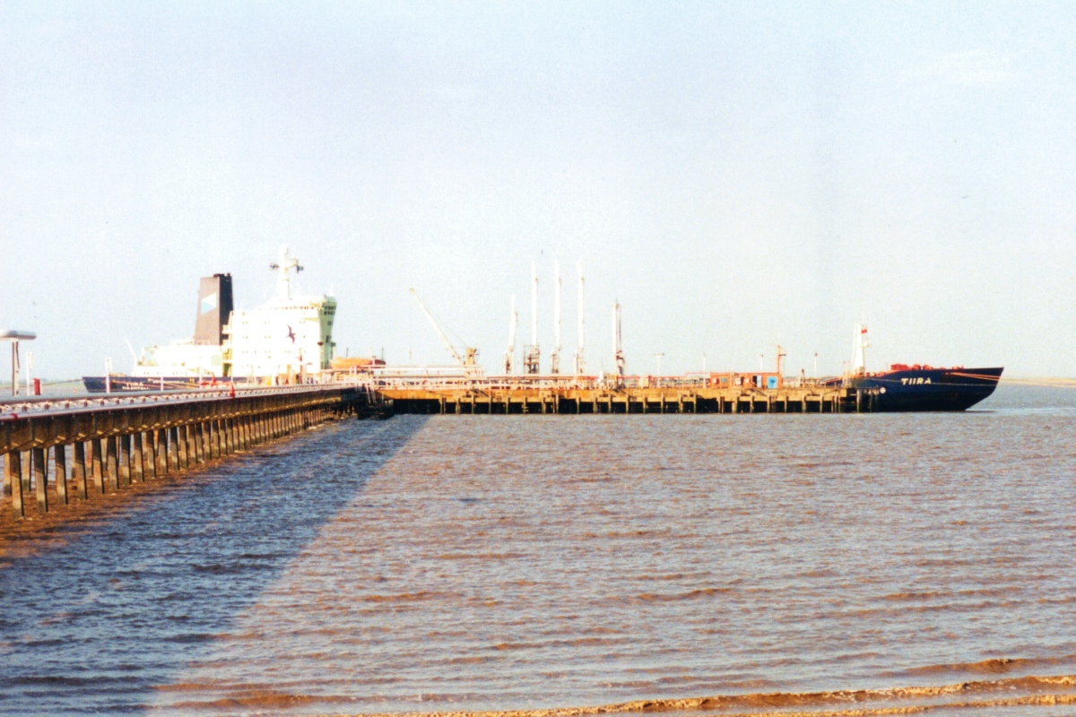 Icebreaking tanker TIIRA at the end of a long jetty 2000 ish.
