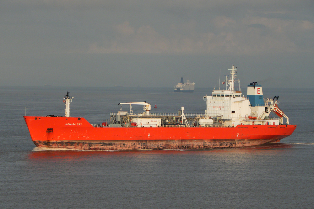Salt End regular, KEMIRA GAS Antwerpen inward in ballast from Rostock to load for Heroya. She is 10018gt, built 1995 by Boelwerf Vlaanderen NV, Temse (1546)