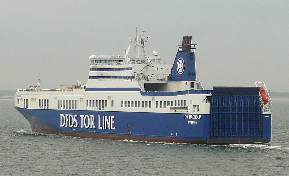 The sun was going down by the time MAGNOLIA SEAWAYS passed us and Spurn Point at the same time. She is on the Gothenburg service, arriving Immingham Outer Harbour at about 2200, and leaving for Gothenburg at 0400 the following morning. She is 32289gt, built 2003 by Flensburger Schiffbau-Ges mbH & Co KG, Flensburg (721) Ex -Tor Magnolia in 2011.