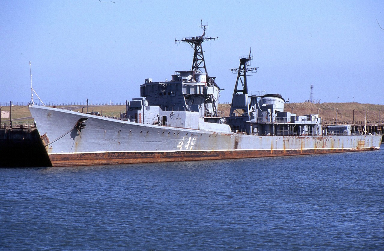 Another view of the Kotlin class destroyer Byvaly at Blyth, on 15 April 1990.