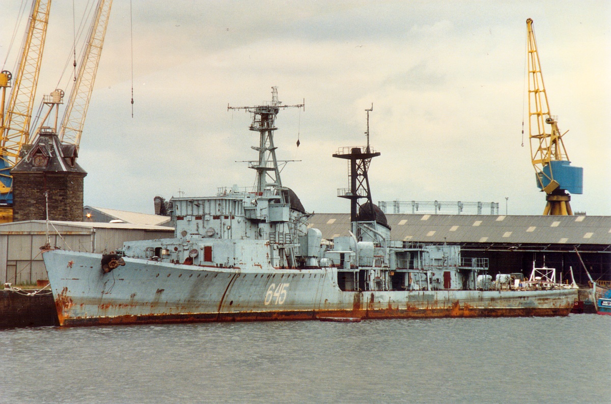 The Skory class destroyer Stremitelny in Albert Edward Dock North Shields on 1 August 1990.