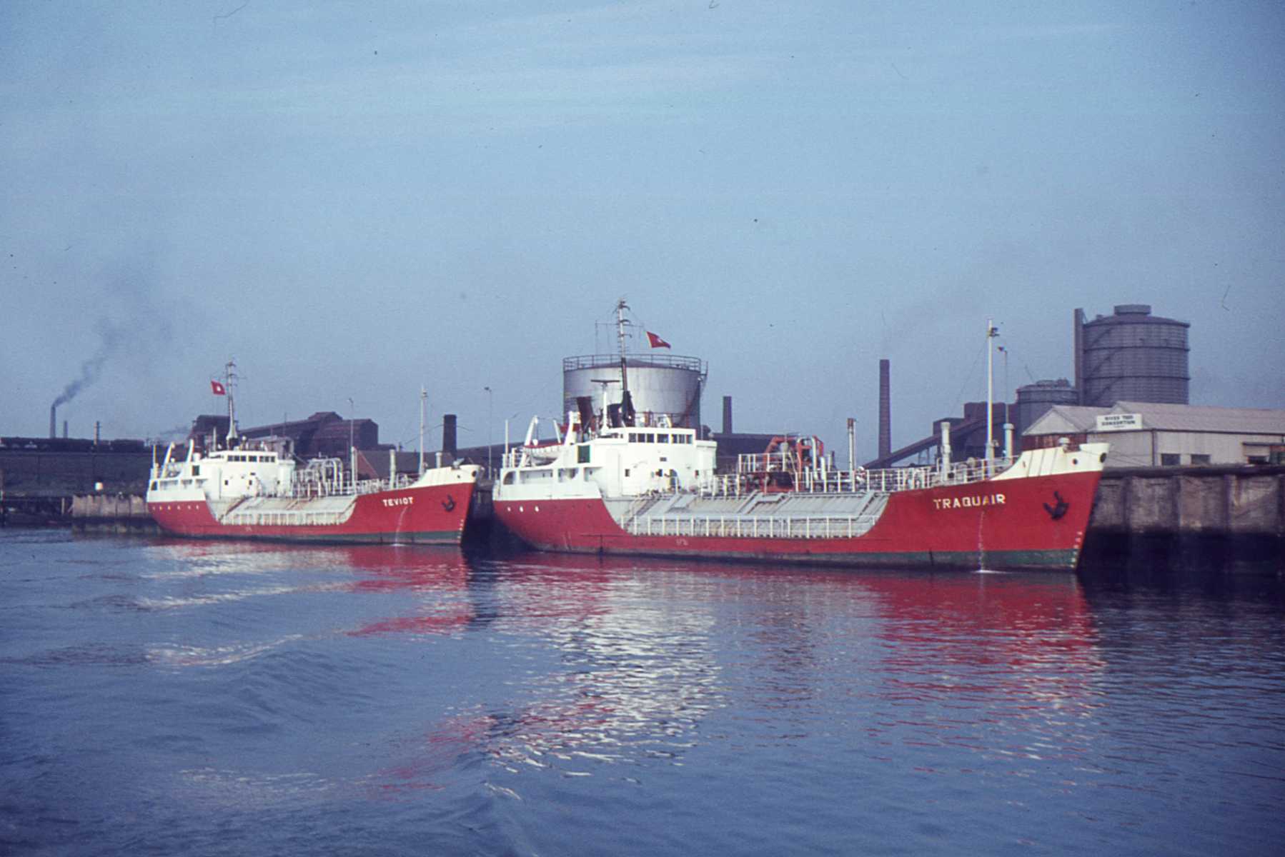 The two gas tankers were built in 1966 at Burntisland to transport liquified ethylene gas from the North Tees site to Rozenburg and were managed by George Gibson and Co., Leith. A small quantity of liquified ethylene was always retained in the tanks in order to start the liquifying process and even on the warmest of days a layer of ice could be seen on deck.
