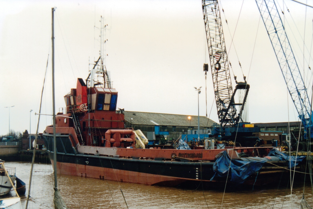 Then it looks as though Damen bought the bare hull (in 1993?) and completed her at their, by now, subsidiary Dunston.