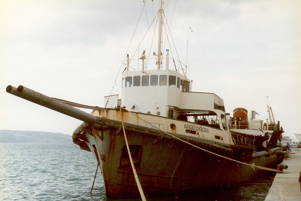 in 1974 she went to Greek owners and became ARGODIGGER, seen here at Suda, Crete in September 1997, photo by Yvon Perchoc