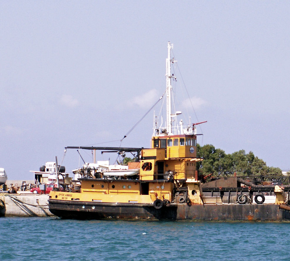 and in 2006 she was renamed SKYRON (SKIRON in Equasis) and is seen here leaving Heraklion under tow for Piraeus in November 2006, she is listed in Equasis as still in service with Piraeus owners