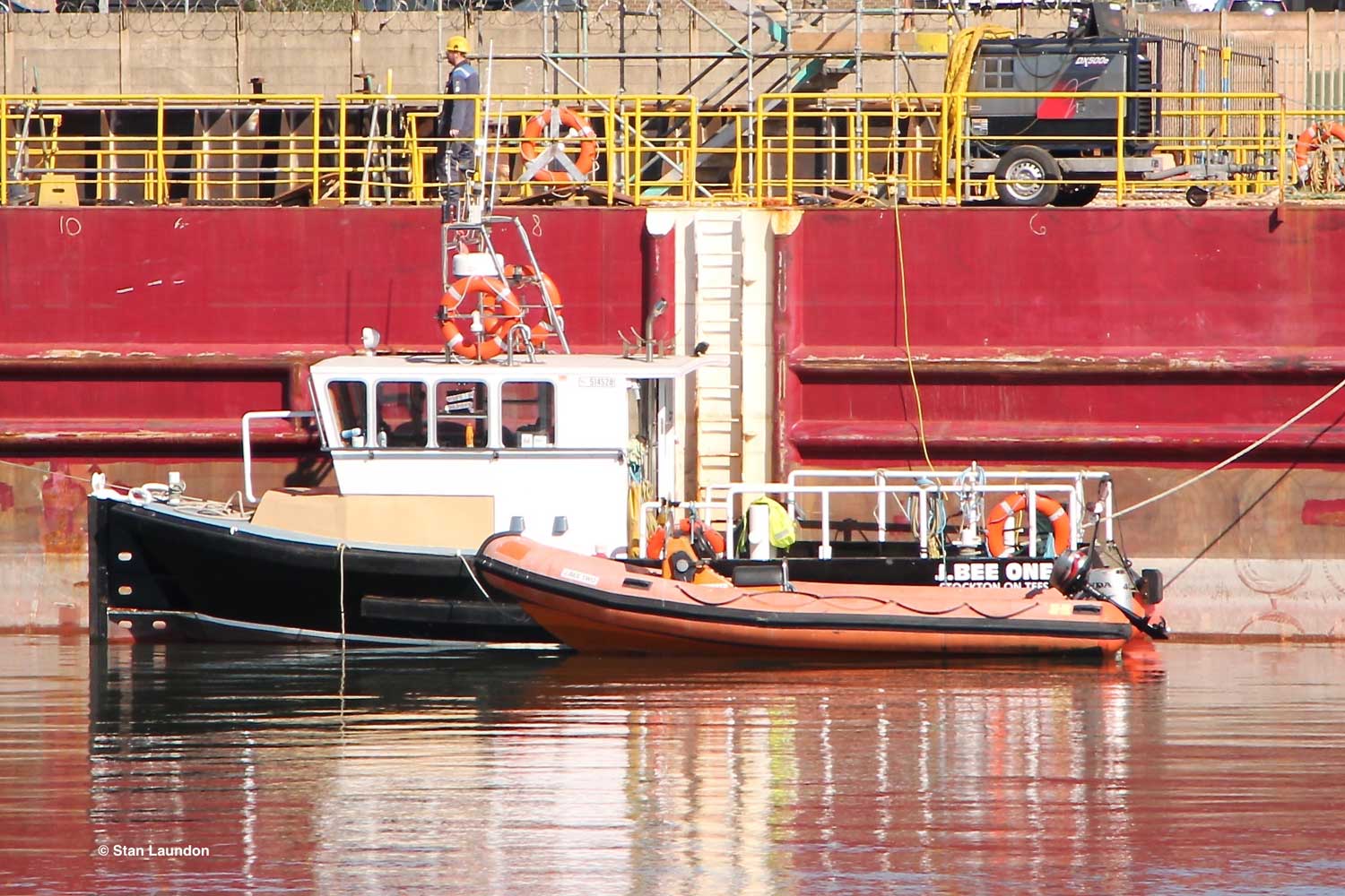 J.BEE ONE and the small J.BEE TWO alongside the barge OSPREY VALIANT at the Heerema Quay in Hartlepool.