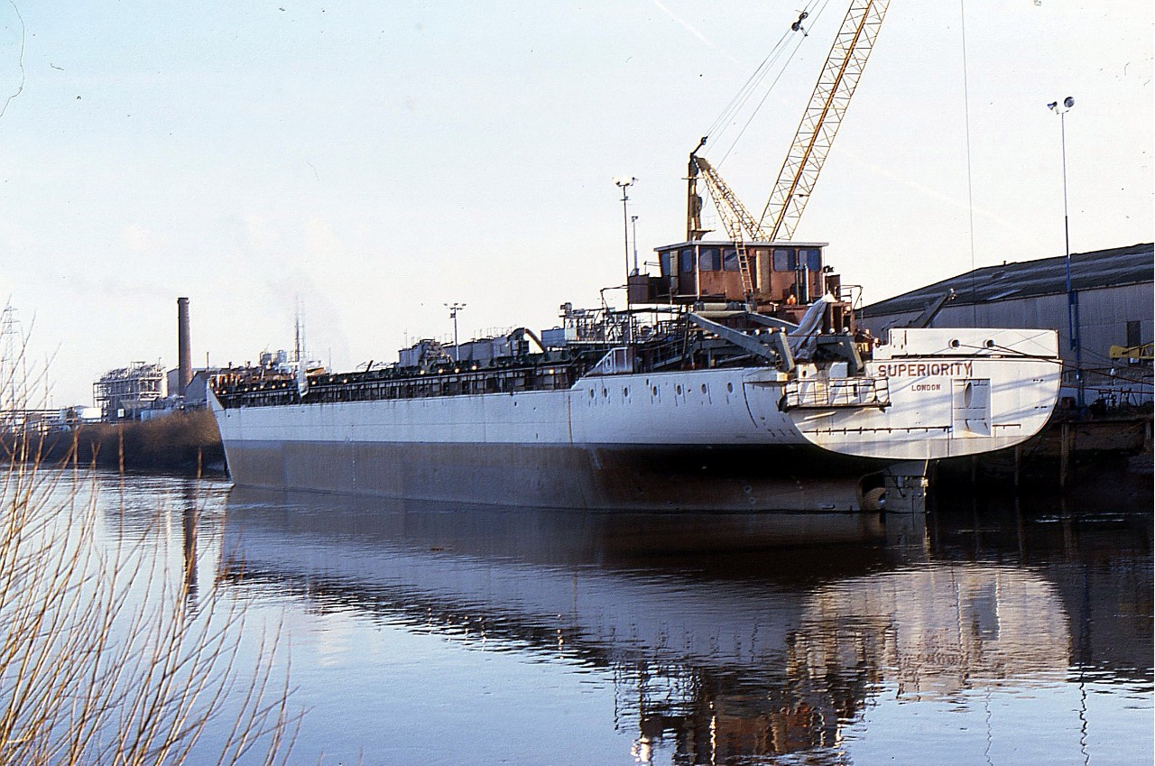 SUPERIORITY alongside Middle Docks quay. She was Cochrane's yn 167 in 1991.
