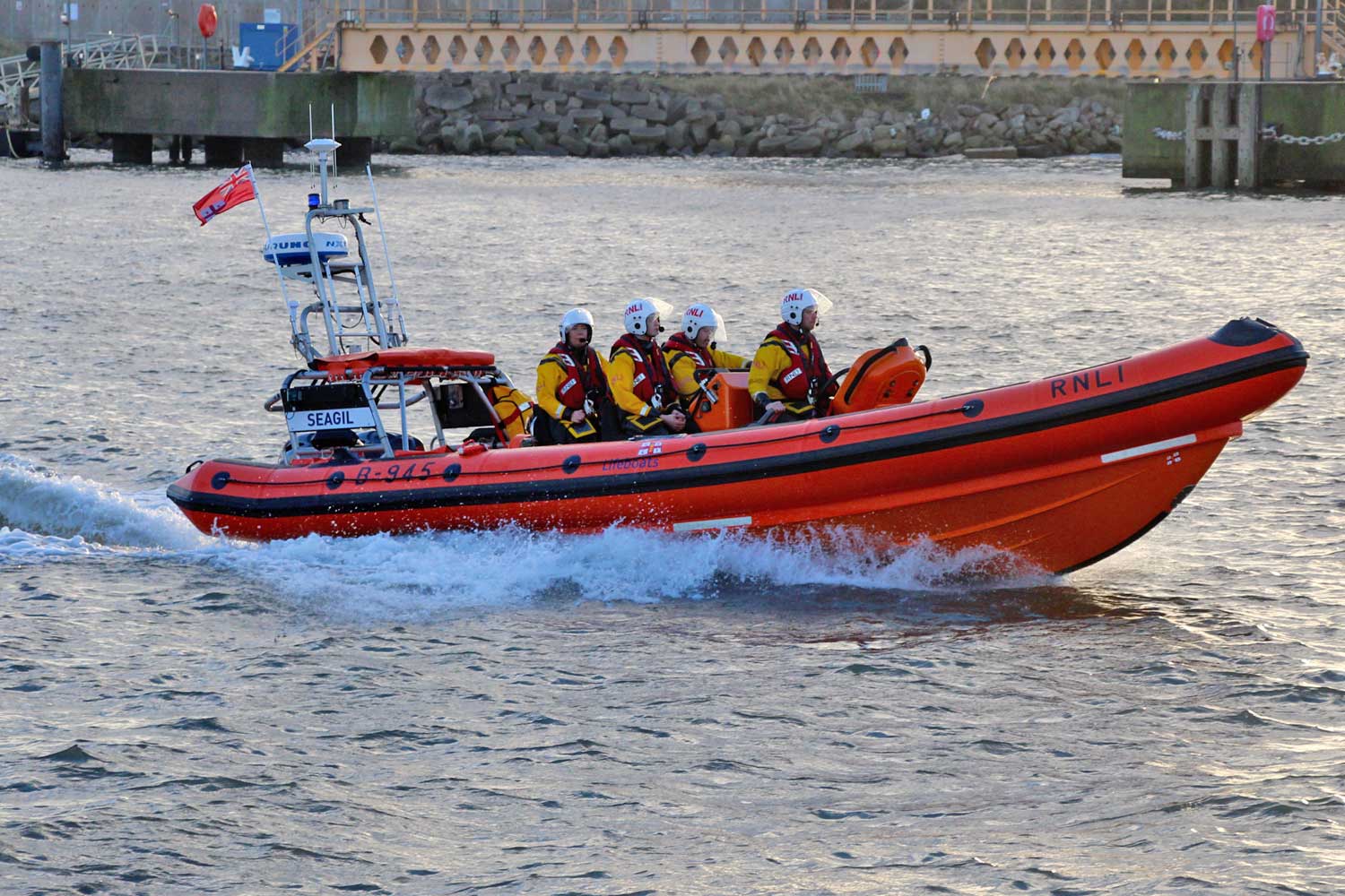 The Atlantic 85 inshore lifeboat (B-945, Seagil) which came to Hartlepool on Sunday afternoon, December 1st, and was part of a selection of vessels that welcomed Hartlepool’s new lifeboat JOHN SHARP to the station. SEAGIL is based at Sunderland Lifeboat Station.