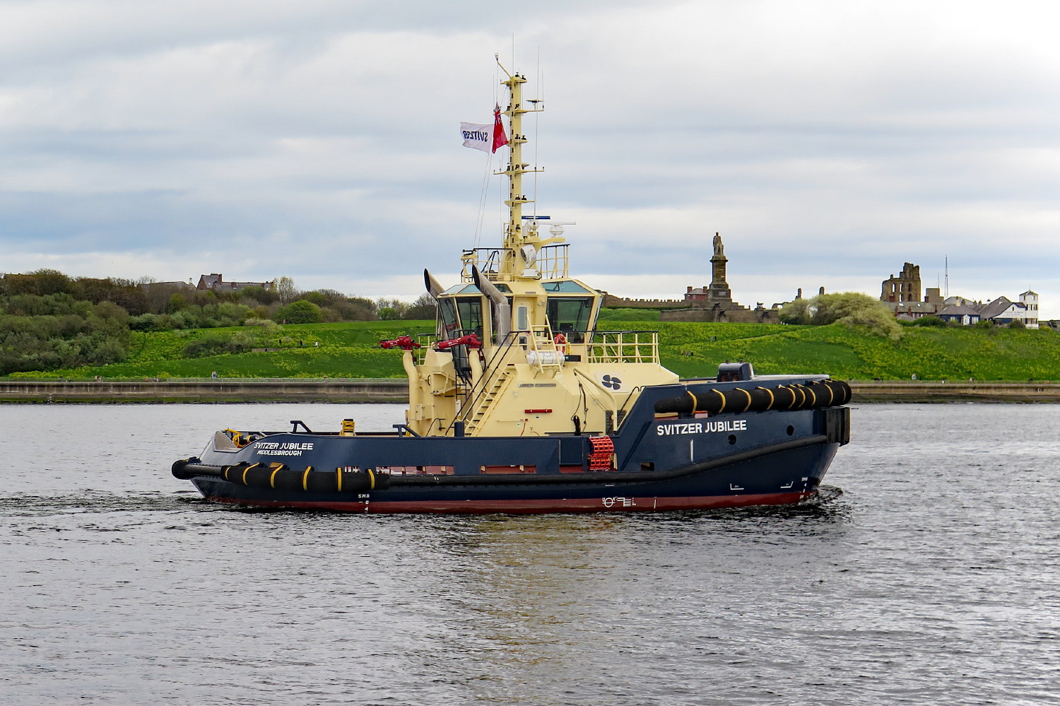 SVITZER JUBILEE passing Willington Quay this afternoon (30/05/2024). On her way from the tug base at Hebburn to pick up the incoming car carrier NEPTUNE HELLAS.