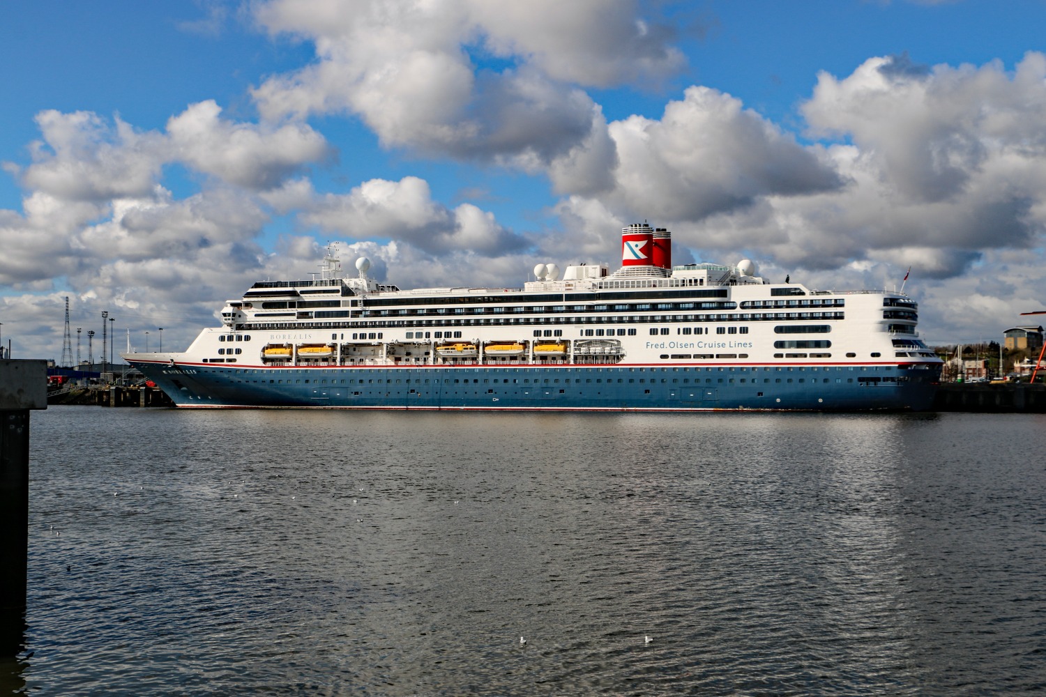 Fred Olsen's Borealis 9122552, completed by Fincantieri in 1997, at Northumbrian Quay last Saturday, 15 March and, as Rotterdam, outbound past Vlaardingen in gloomier weather on 24 June 2017.