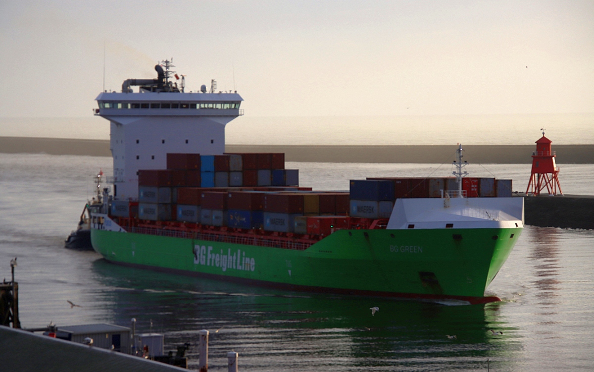 BG GREEN inwards to the Tyne Container Terminal 06/12/2025. Photos by Richard Athey.