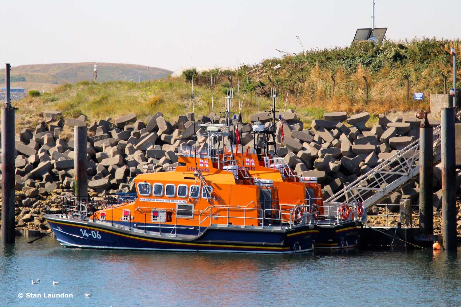 The Trent class lifeboat 14-06 “RNLB WINDSOR RUNNER” (Civil Service No.42) in Hartlepool Marina. She was stationed in Blyth from 1995 to 2004 and became part of the reserve fleet until 2008 when she served, for a short while, at Dunbar (Torness), returning to the reserve fleet as she is now.