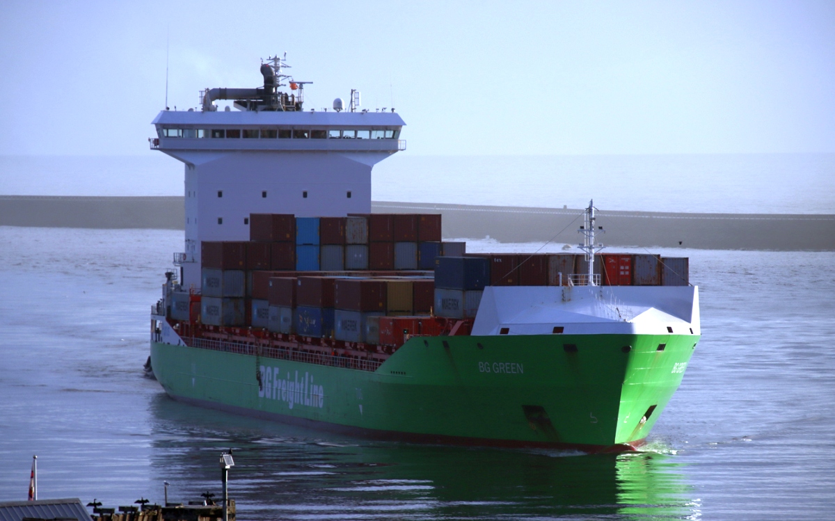 BG GREEN inwards to the Tyne Container Terminal 06/12/2025. Photos by Richard Athey.