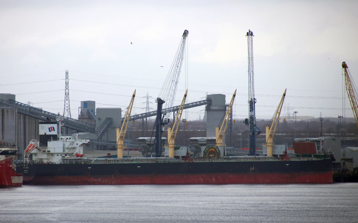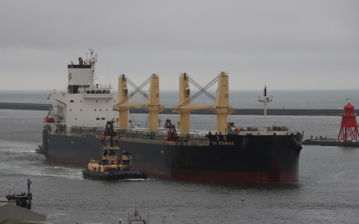Bulk carrier TAI STAMINA inwards past North Shields for Riverside Qay 18/01/2026. Photos by Richard Athey.