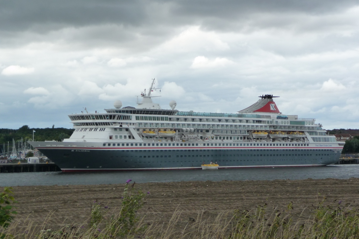 Passing Fred Olsen Lines Balmoral alongside Northumbrian quay 28/6/2016