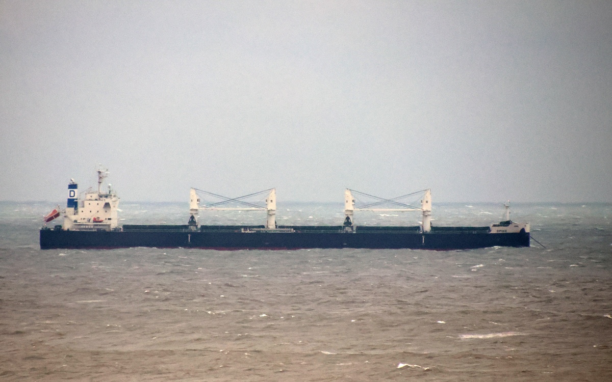 Long distance shot of the bulk carrier SPIKE in the Tyne Anchorage 11/01/2026. Photo by Richard Athey.