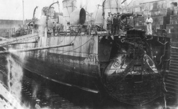 Zulu, which on 8 november 1916 hit a mine laid by UC 1 +19-07-1917, losing her stern, towed to Calais to ensure she remained water tight then on to Chatham.