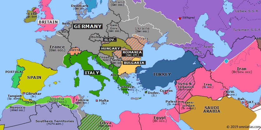Christmas day 1942, friday 25 december the situation in the European theatre, Mediterranean and North Africa is amply illustrated here, full credits to c holder ...