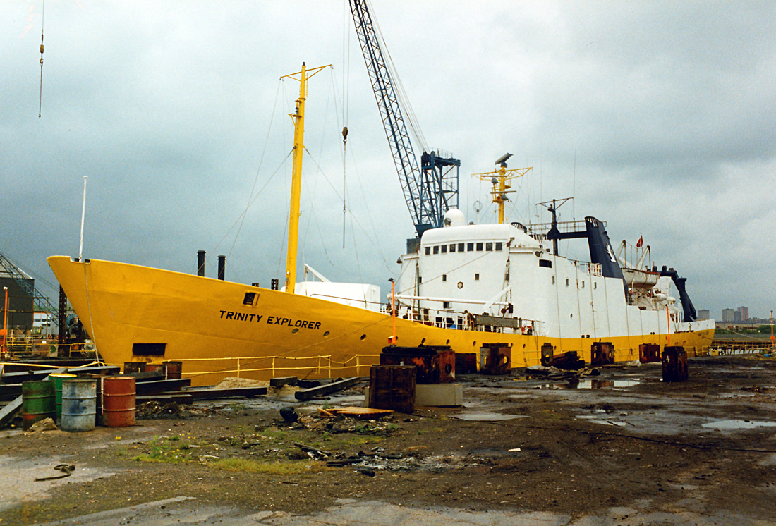1990 TRINITY EXPLORER, seen probably just when acquired, at Manchester Dry Docks,