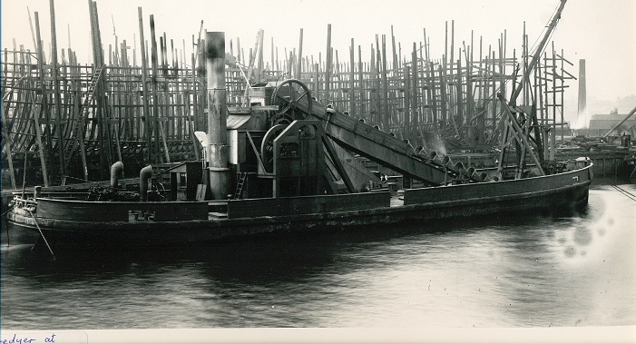 This dredger is shown Moored at Thornaby. When I first acquired the photo I spent some time trying to identify the craft but without success. All I could make out from the original picture was what I took to be the port of registry it the stern but only the letters 'SEA' were visible and I took it to be part of the name 'Swansea'