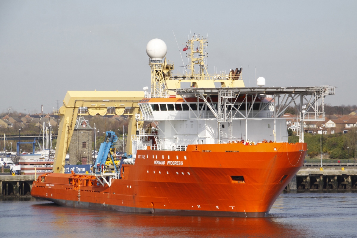 NORMAND PROGRESS outwards from Whitehill Point to the anchorage to wait for the sailing of ENQUEST PRODUCER 23/03/2015.