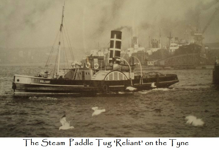 The Tyne built Ridley tugs paddle tug Reliant with Brigham & Cowans dockyard in the background