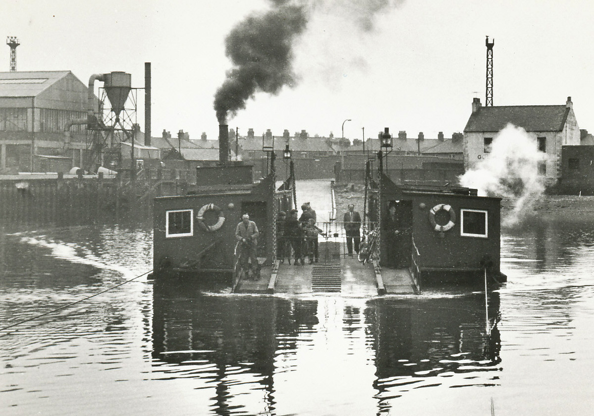 "B.H.C. High Ferry No. 2. VEHICULAR and passenger ferry. Built for the Blyth Harbour Commission. The hull is divided into five watertight compartments. There is a main carriage-way down the centre of the hull, which will carry motor lorries up to 8 tons weight. On each side of the carriage-way deckhouses are fitted for 300 to 400 passengers, ample seating accommodation being provided. The ferry is transported across the harbour by two wire ropes, guided through ball-bearing fairleads and operated by a powerful winch-type engine supplied by Messrs. Clarke, Chapman & Co., Ltd., Gateshead. The vessel passed through an official trial on her station early in September 1922."