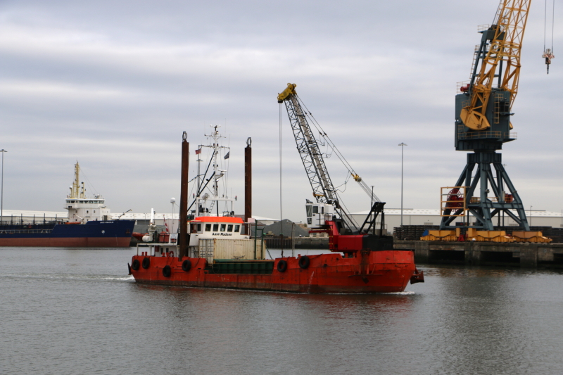 The Danish Aase Madsen, from Bogense in 1977, heading out of the Hudson Dock and upriver this morning, presumably to do some spot dredging. The first time I've seen a vessel passing upriver of the fish quay for quite a while.