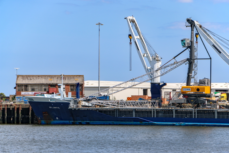 The Dutch coaster Atlantic, from Police/Groningen in 2011, loading expensive deck cargo at Sunderland this afternoon.