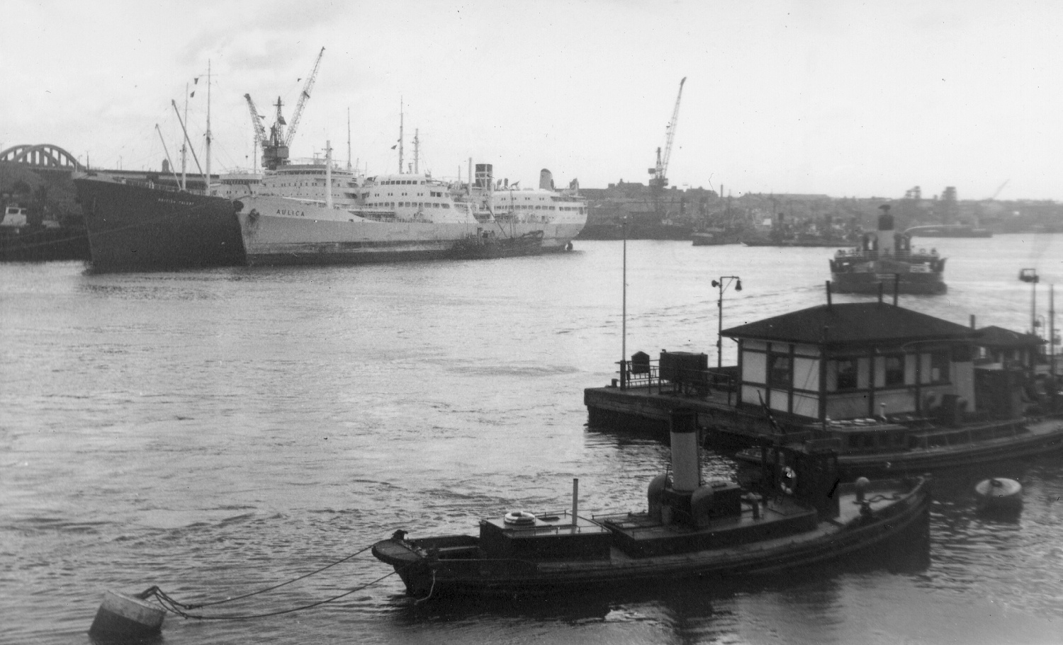 AULICA & BRITISH TALENT over the other side, but what is the vessel in the foreground? Same funnel colour as the ferry? May be port health or some such? Seems to have quite a short name.