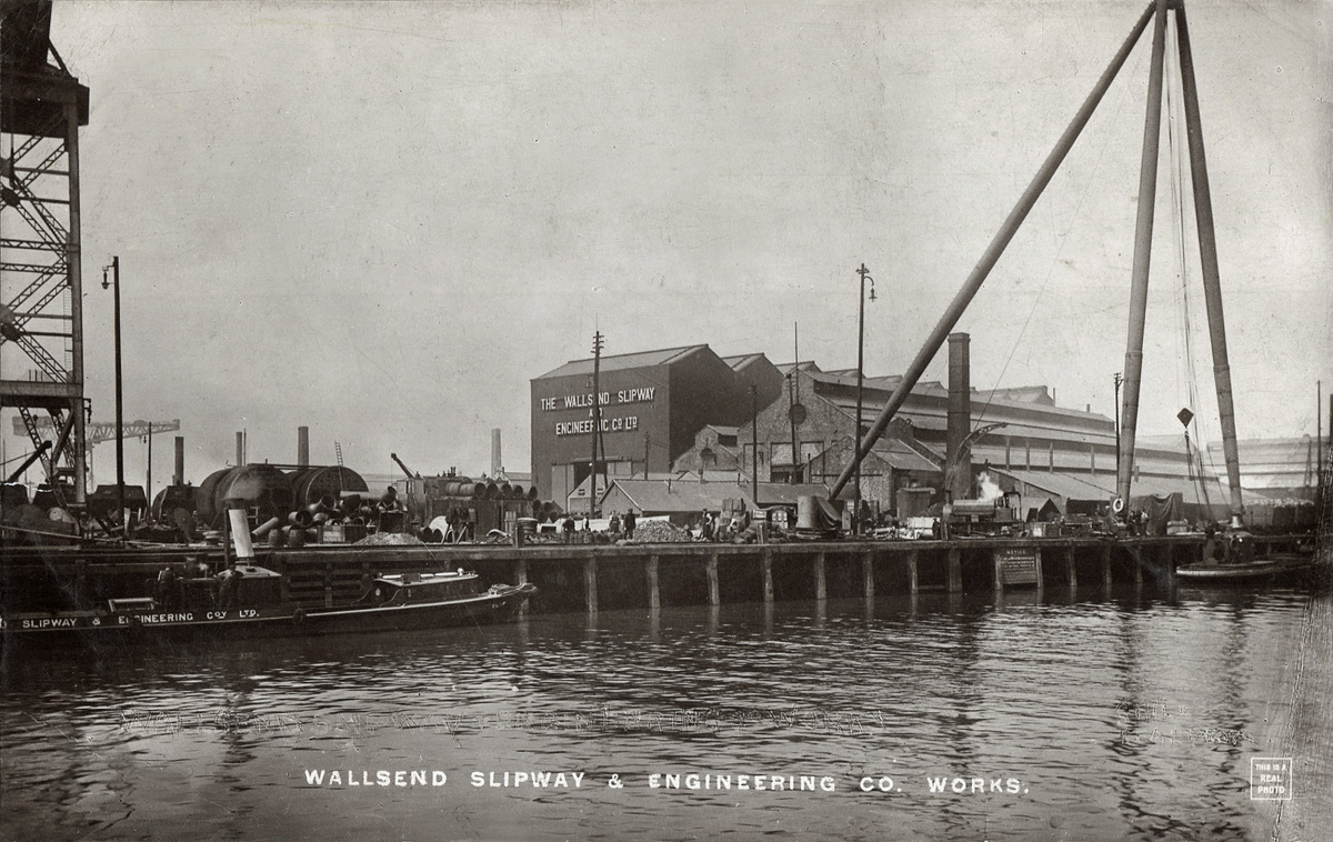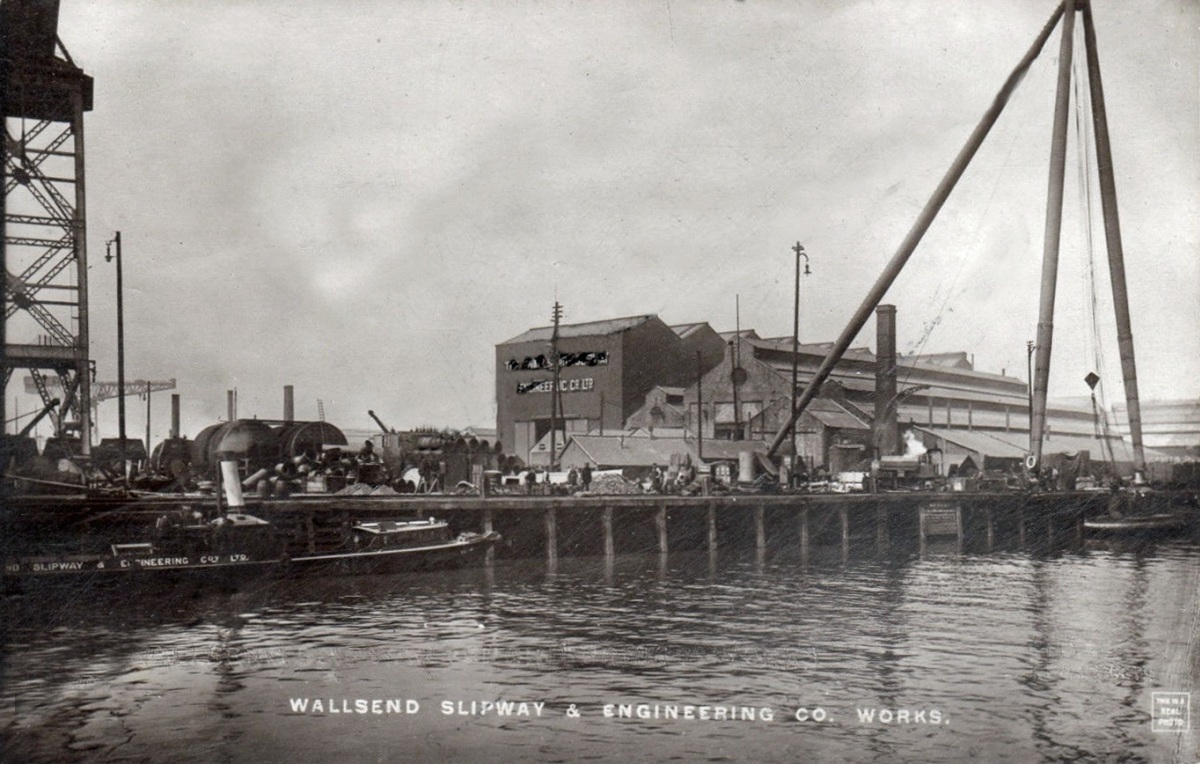 Unfortunately some defacing to the photo over the name on the shed, but it does say Wallsend Slipway & Engineers.