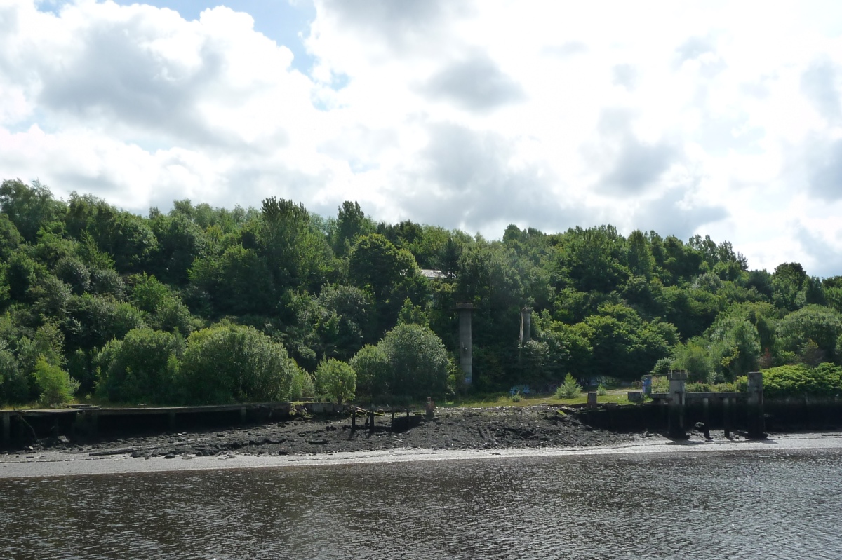 As Mike says, the old yard is almost hidden by vegetation. The concrete crane supports are still visible.