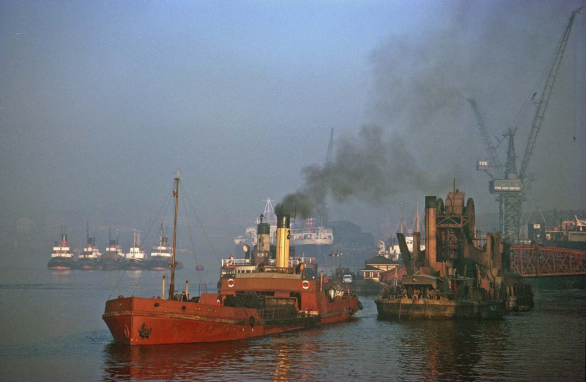 A pair of Tyne Improvement Commission stalwarts are going about the tasks they were designed to undertake, in this instance off Harton Staiths, South Shields, where doubtless there would be ample bucketfulls of silt and gunge waiting to be dealt with.