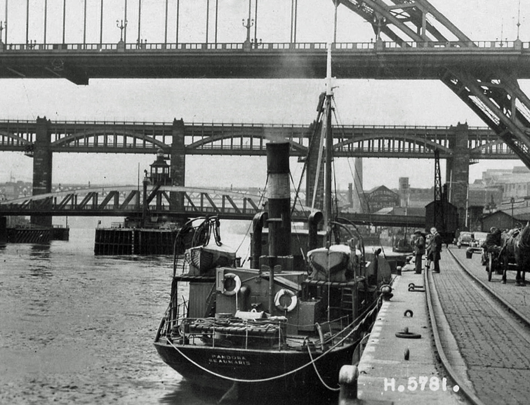 Another fine view of the Newcastle bridges with the coaster PANDORA alongside the Quayside.