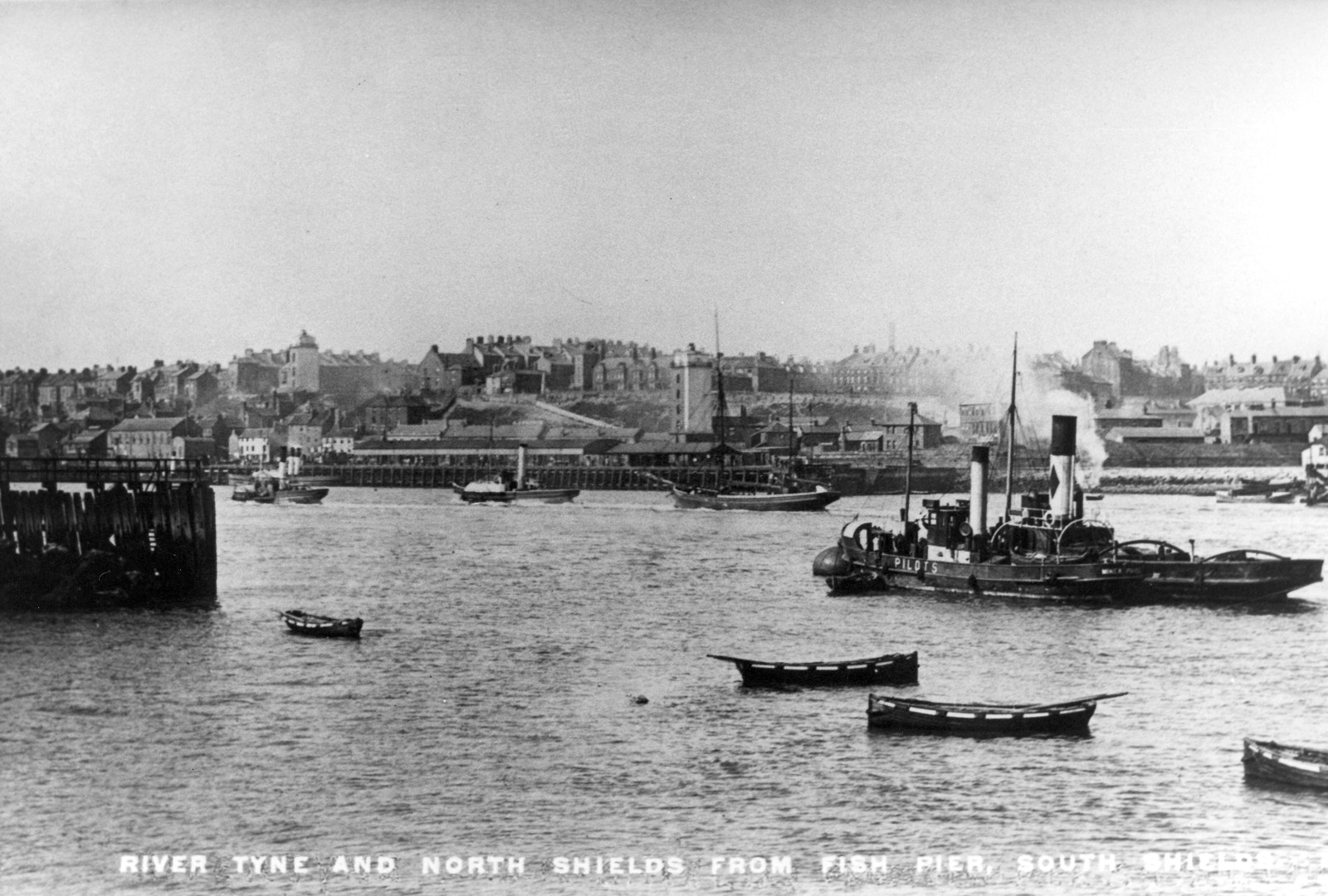 Another fine post card from Kevin Blair. A view across to North Shields with pilot boat MINER in the foreground, maybe JOFFRE (Edit: on second thoughts no) behind and a few paddle tugs further in the distance. MINER details here: http://www.tynetugs.co.uk/minerno131880.html