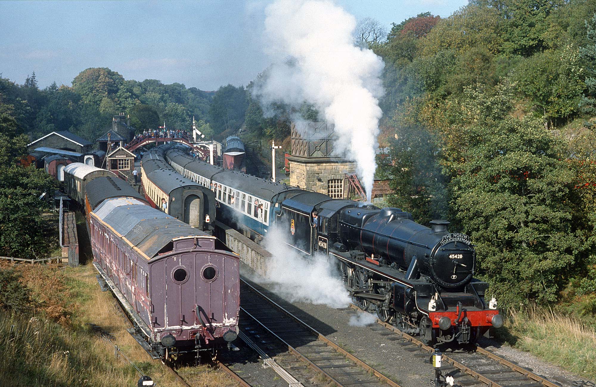 The former LMS Stanier Black Five Class 5MT 4-6-0 number 45428 was named "Eric Treacy" in preservation. She was named after Eric Treacy MBE who was an English railway photographer and Anglican bishop. Both photographs were taken at Grosmont on September 11th, 2014.