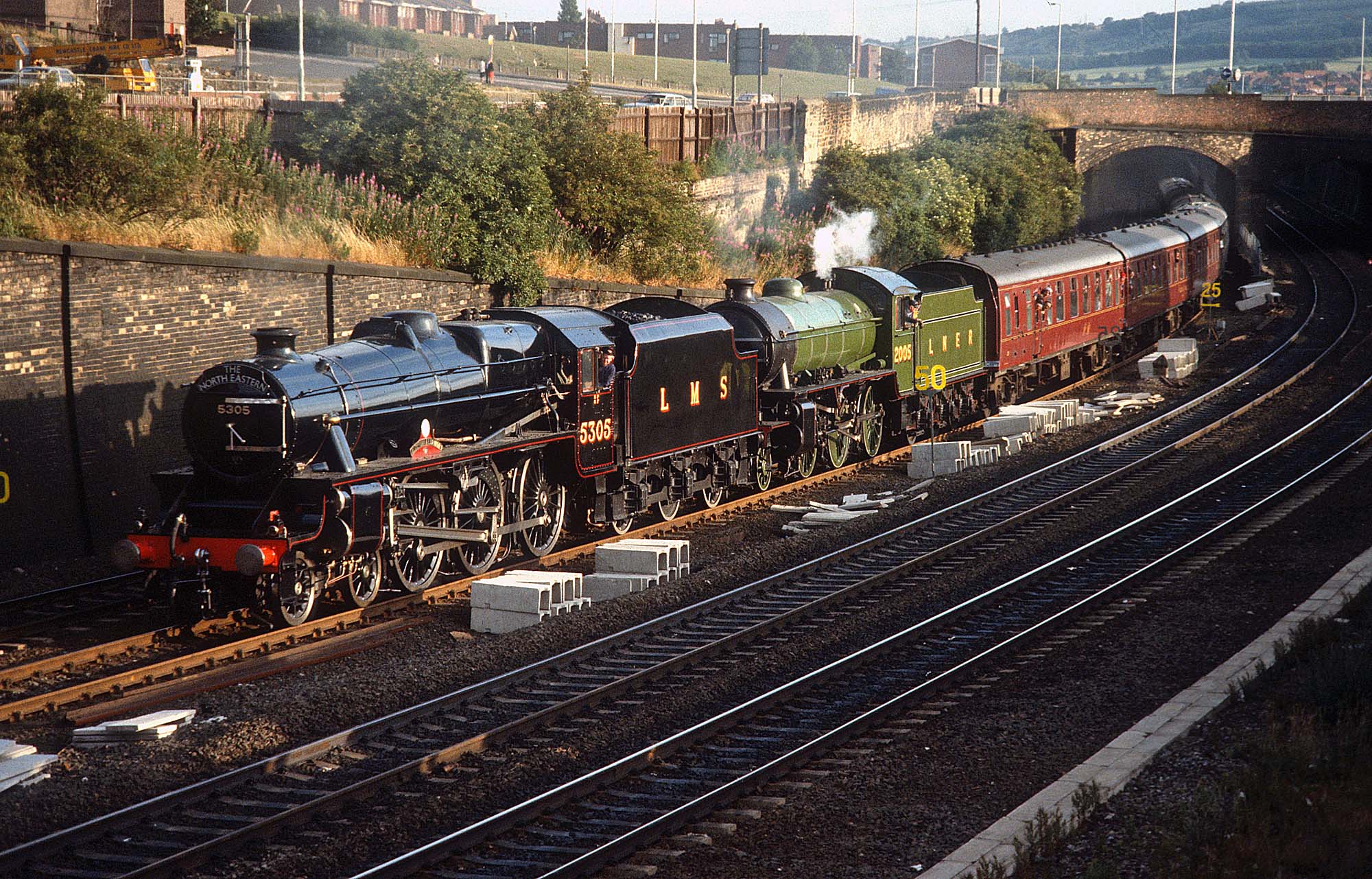 The Black 5 and the K1 nearing the King Edward Bridge after climbing up Bensham Bank, Gateshead, date not recorded