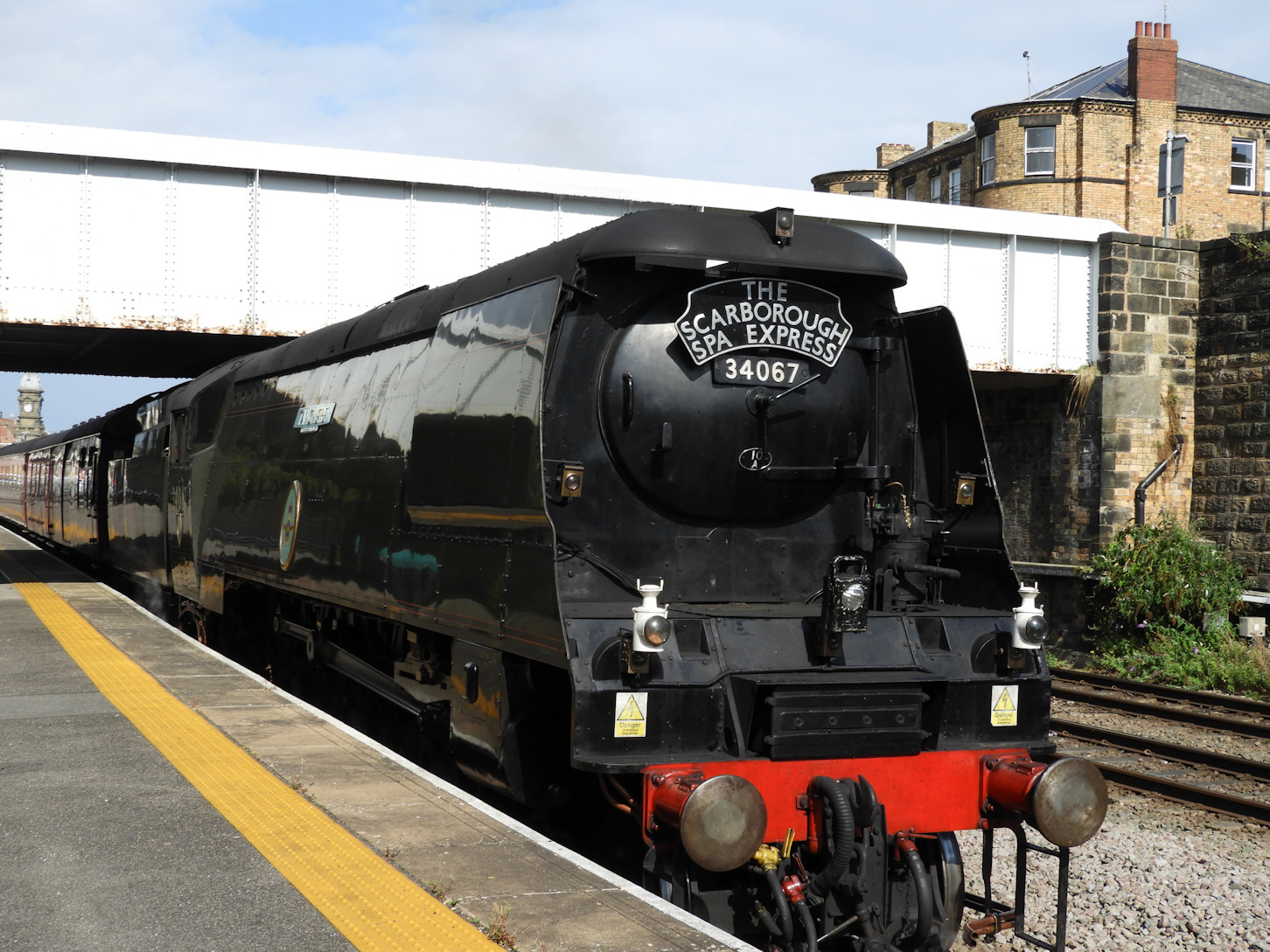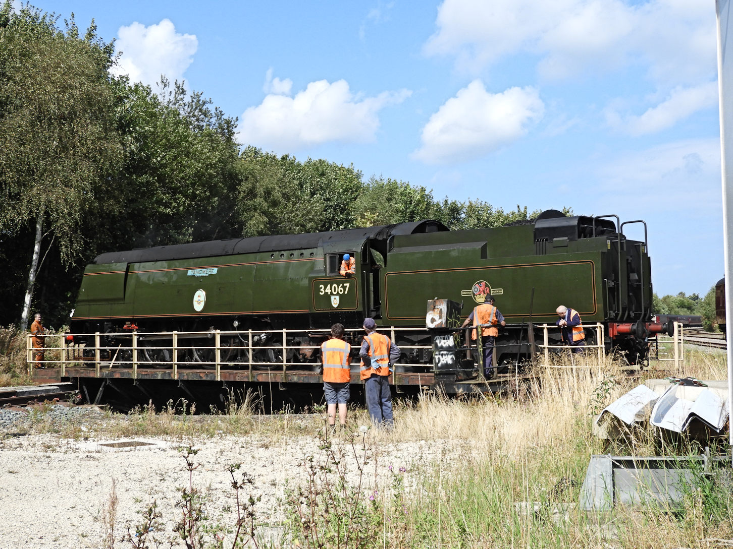 .... prior to the above, we took a worthwhile taxi ride to catch her on the turntable, easily viewed through a pallisade fence at the end of the Toolstation car park off Seamer Road. An interesting operation, powered by a quite small electric motor!