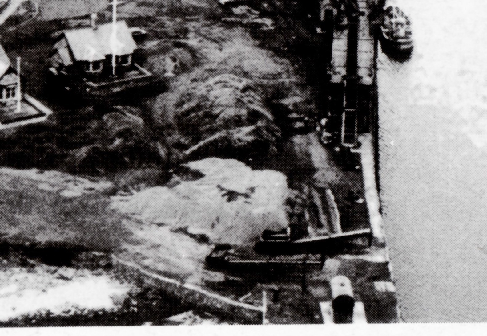 Not easy to see on this picture, but its a Hopper for dropping Grain onto an inclined conveyor to load into a ships hold. The conveyor has been left out of the original picture. Could also have been to load any other material. At the time it was the only bit of the quay where you could bring in a lorry. The upstream quay was where the coal staiths were.