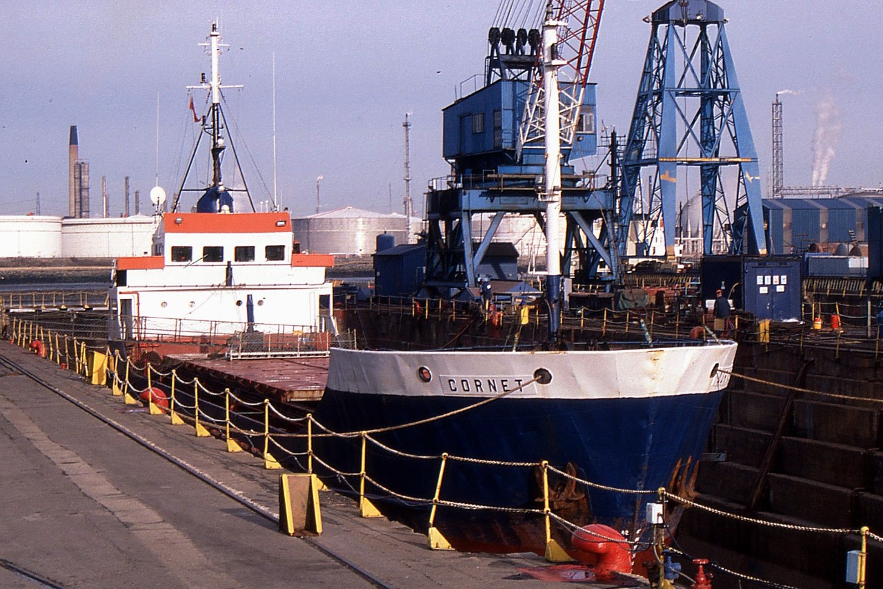 12. August 1998, Seaham. CORNET, BEATE, SEA HUMBER, ANJOLA, ANTINA, SOKNA and dredgers HEBBLE SAND and COQUET MOUTH. Ships discharging stone, board and urea loaders taking limestone.