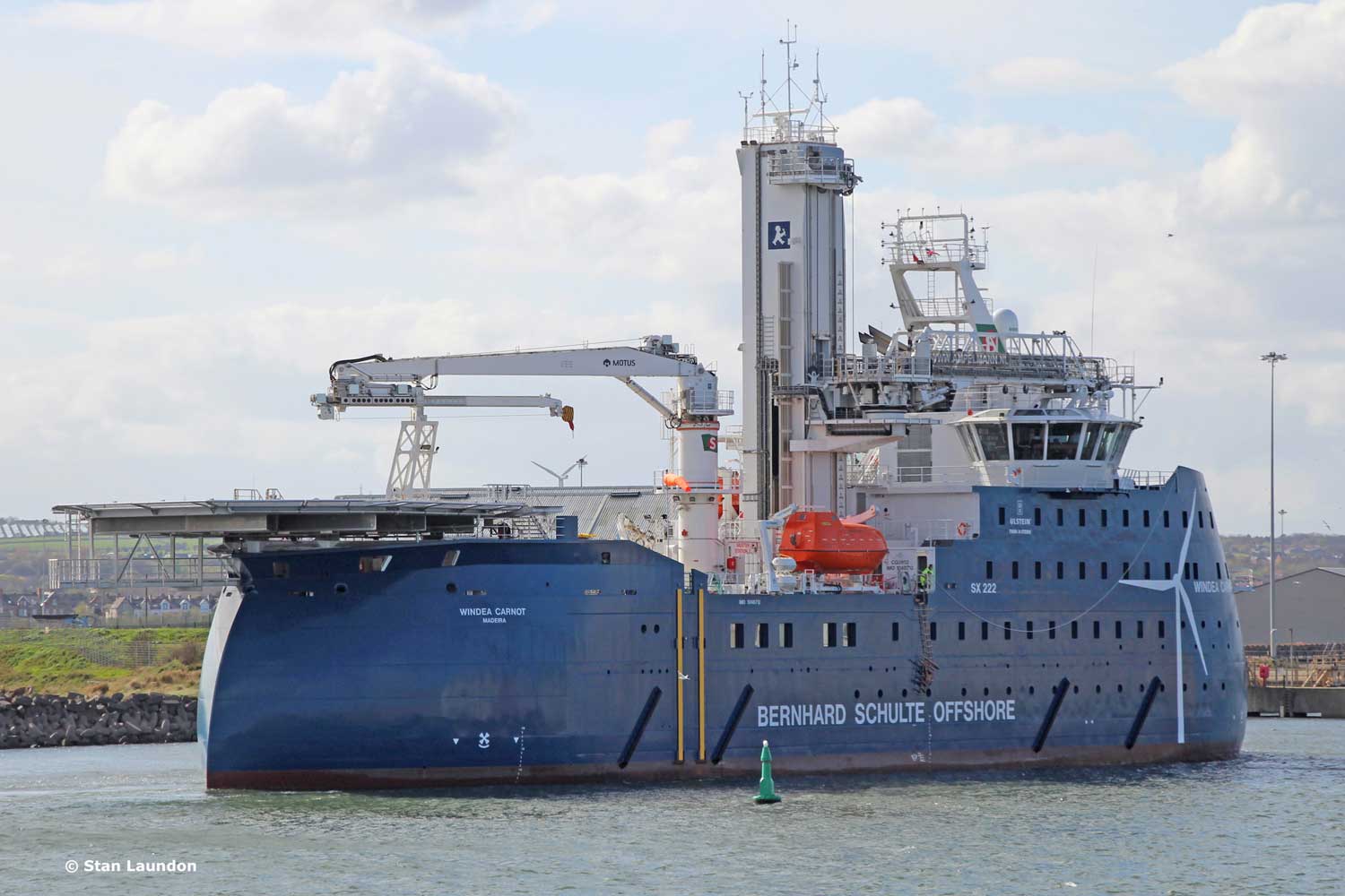 WINDEA CARNOT arriving in port from the Tees Bay, passing the Pilot's Pier, and headed for the Deep Water Berth for a Stores/Crew Change.
