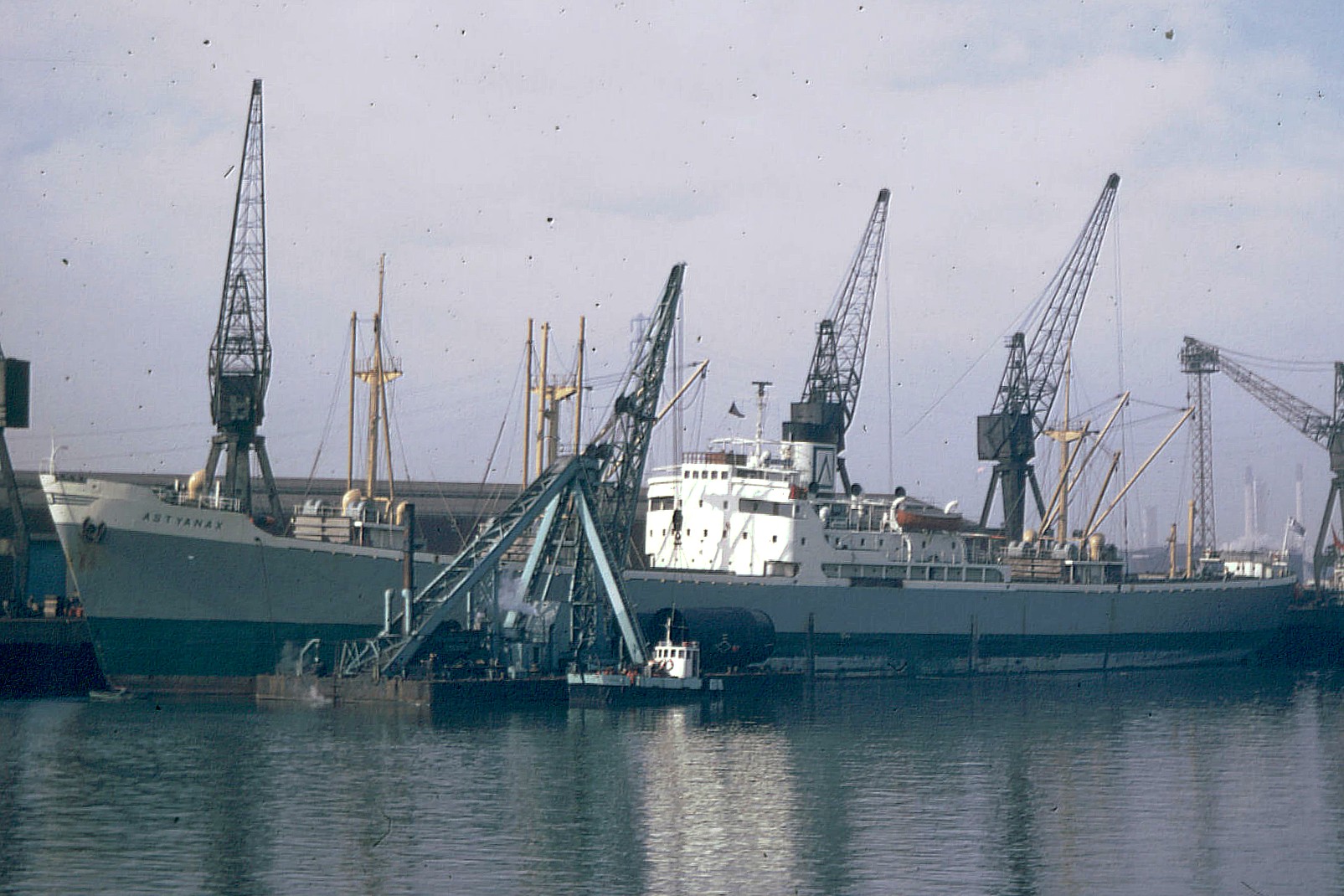Albert Weller slide, dated circa March 1971. Tees Dock: I had seen her for myself in Middlesbrough Dock on 1 July 1969, but had not taken any photo of her. So, obviously, very pleased to have this view from Albert's collection.