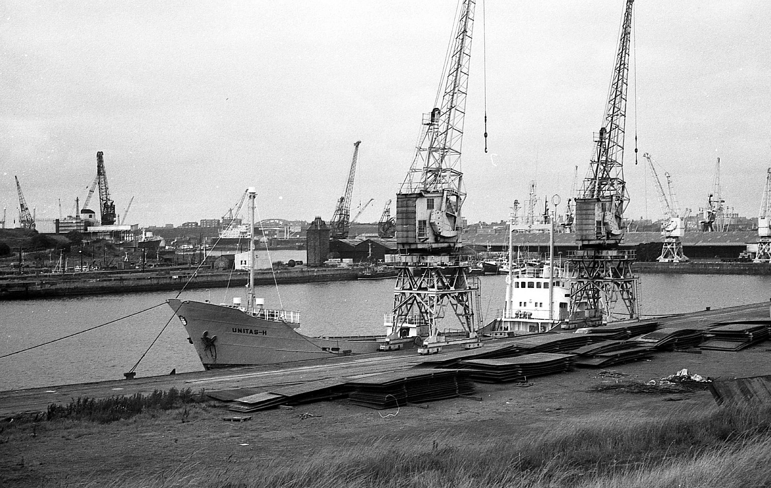 Albert Weller slide bearing date February 1976. Tees Dock: However, this clearly dates back to around the time of my own sighting on 2 November 1975, as the BUNGA RAYA can be seen in the background of both our views: I saw her again as UNITAS-H on the Tyne on 2 September 1976. I had to do the scans before I realised I was seeing her in the Albert Edward Dock, North Shields. The full vista: with enlargement: From above: and full negative view: Ron