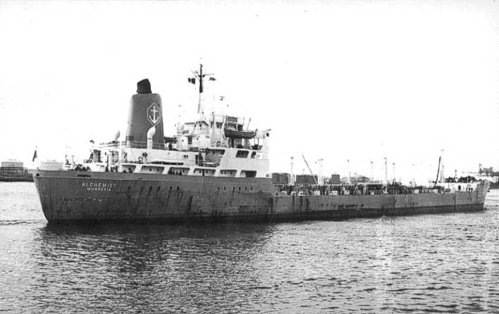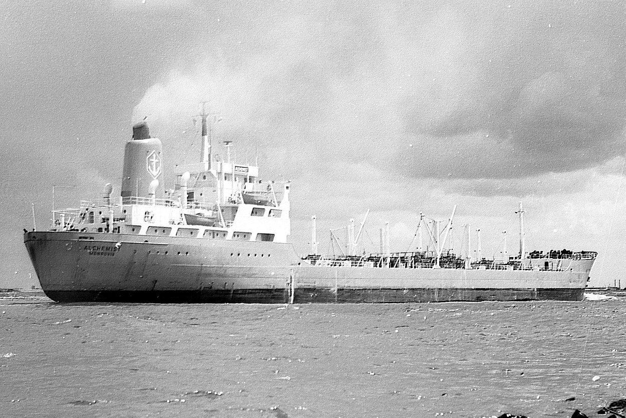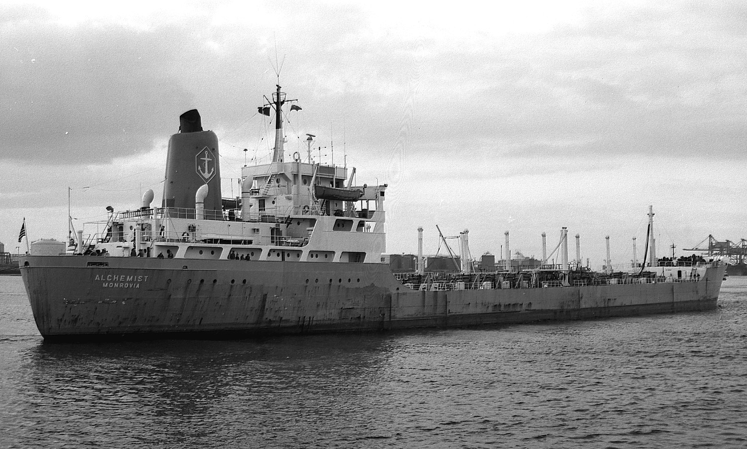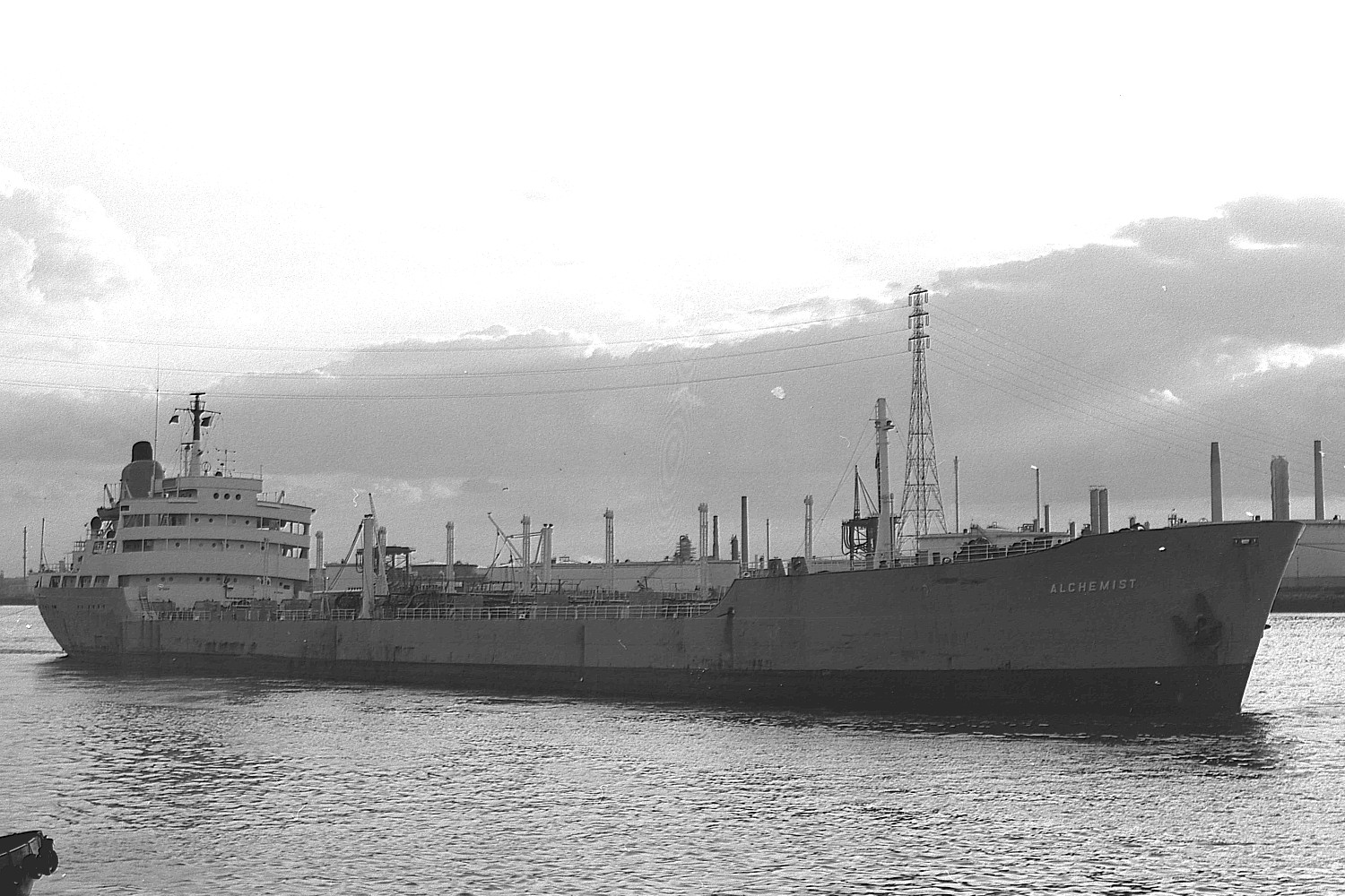 The veteran (well part of!) tanker ALCHEMIST sailing from the River Tees on 22 August 1980.