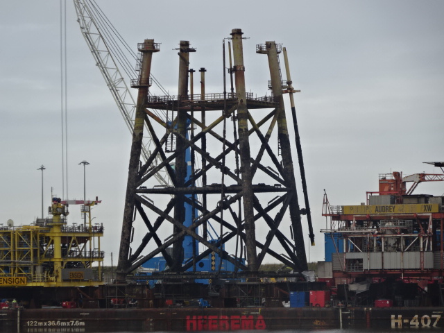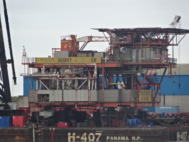 She has the topsides of ENSIGN and AUDREY rigs with a jacket (legs) between them