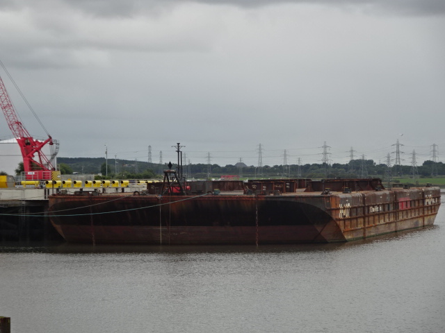 Waiting at Bates last Thursday for the tug ERACLEA to bring her sister barge, H-408, with more decommissioned North Sea tat and then take her away