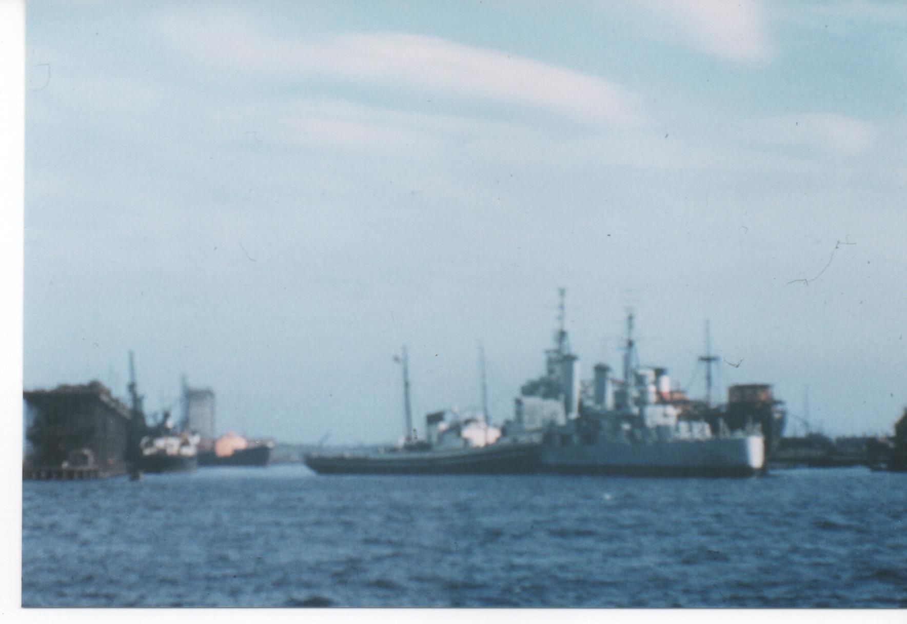 HMS GLASGOW alongside, 8th July 1958, the day she arrived in tow for demolition