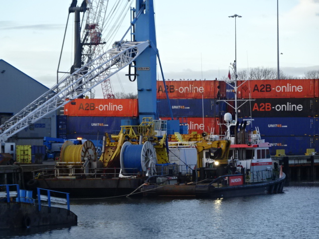 Down as laid by so as I did not see them come in I do not know if the gear on the barge came in with her or has been loaded